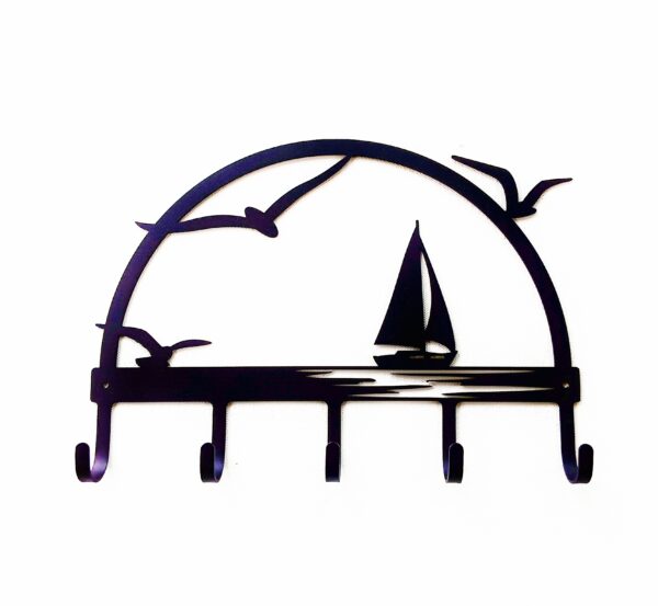 5 hook Sailboat hanger. Available in black or white. Number of hooks can be changed and length can be altered to suit you. Current width is 400mm.